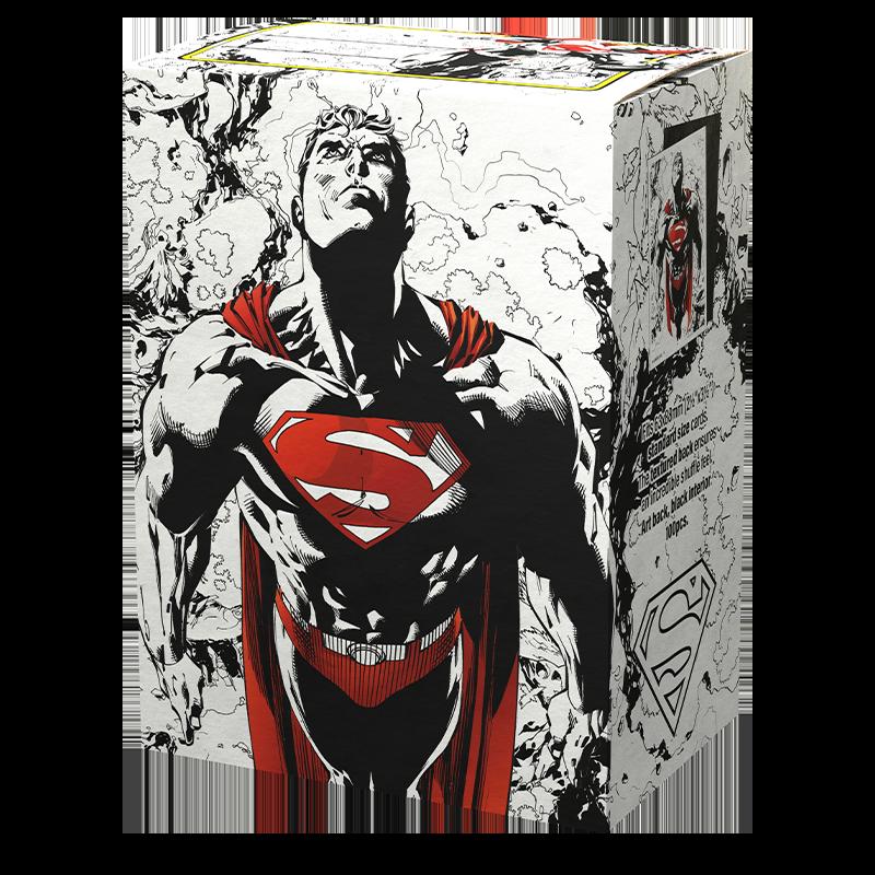 Upgrade your card sleeves to something truly super with Dual Matte Art Superman sleeves! Pay homage to this legendary superhero with unique sleeves that capture the spirit of Superman and his heroic ideals with an elegant color palette of red, black and white. Dual Matte sleeves feature a black interior making the sleeves fully opaque while providing an elegant backdrop for black bordered cards. Dual Matte sleeves shuffle and handle like a dream. The sturdy cardboard box fits 75+ single sleeved cards or 65+ double sleeved cards. Every box has a label on the top for personalization. 100 Dual Matte Art sleeves Standard Size Black interior Fully opaque