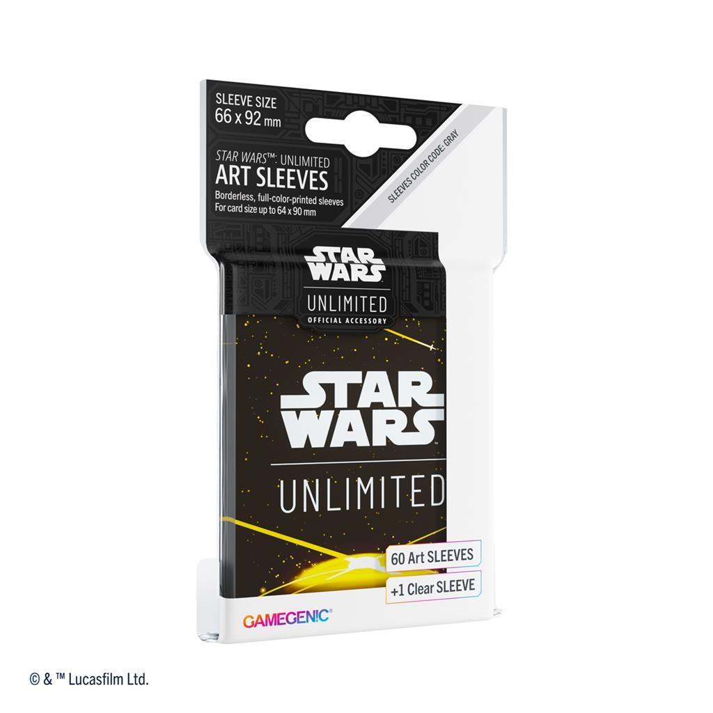 The Star Wars: Unlimited Art Sleeves protect a full deck up to 60 standard-sized gaming cards. The sleeves are full-color printed and come in six new amazing eye-catching designs. The durable and robust Star Wars: Unlimited Art Sleeves provide a great shuffle feel and a comfortable haptic experience and are optimized for a vast variety of TCGs and LCGs. One pack contains 60 Art Sleeves and 1 clear sleeve for the leader. The Star Wars: Unlimited Art Sleeves can also be used for all standard-sized card games!