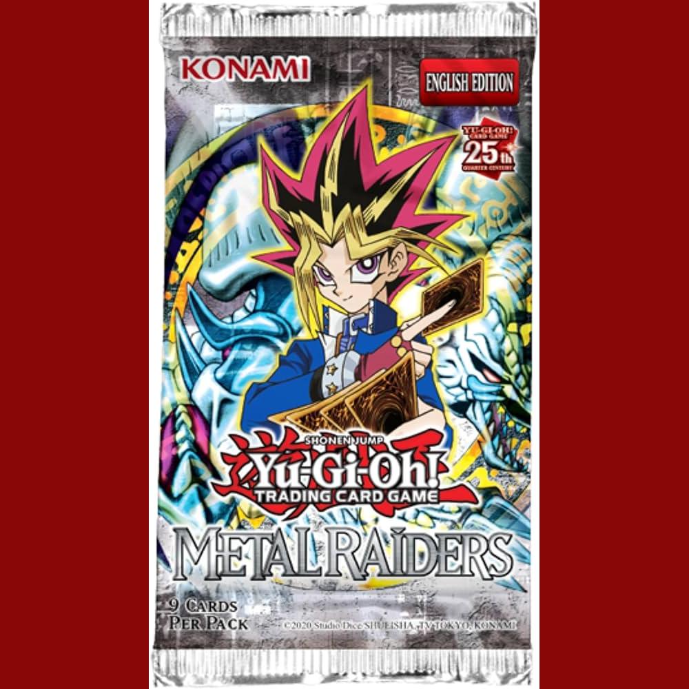 Metal Raiders was the second Yu‑Gi‑Oh! TRADING CARD GAME booster set ever released! For years, you could only get your hands on these coveted packs as part of the Legendary Collection, but now, just in time to celebrate the 25th anniversary of the card game, they’re being made available as standalone booster packs! This set is famous for introducing many incredibly powerful Trap Cards, including Yugi’s Mirror Force and the first wave of Counter Trap Cards: Horn of Heaven, Magic Jammer, Seven Tools of the Bandit, and, you can’t forget Solemn Judgment! Of course, Metal Raiders didn’t leave Duelists defenseless against these powerful cards – Heavy Storm also made its debut in this set! This printing will feature both Secret Rares from the set. There are 9 random cards per pack