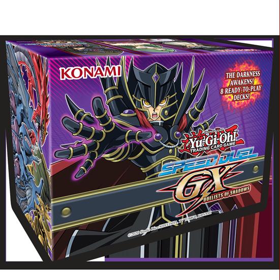 The Shadow Riders have descended upon Speed Duel and joined forces with other villainous characters from the Yu-Gi-Oh! GX animated series to cause mayhem and unleash the mighty Sacred Beasts. This box set is designed to allow up to 8 players to jump into their own dynamic gameplay experience with 8 pre-constructed Decks along with a selection of other cards that can be used to customize them. Which Duelists of the Shadows will you get to command? Here’s a peek at the roster!